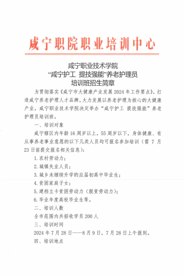 开云kaiyun体育“咸宁护工 提技强能”养老护理员培训班通知